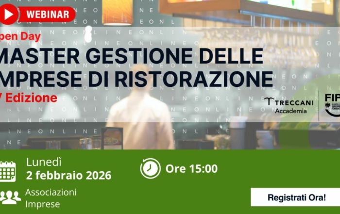 Lunedì 2 febbraio Ore 15:00 Webinar per Associazioni e Imprese Treccani Accademia e Fipe presentano la 4ª edizione del Master “Gestione delle imprese di ristorazione”, il percorso formativo che fornisce – attraverso un approccio completo e pratico – un [...]
